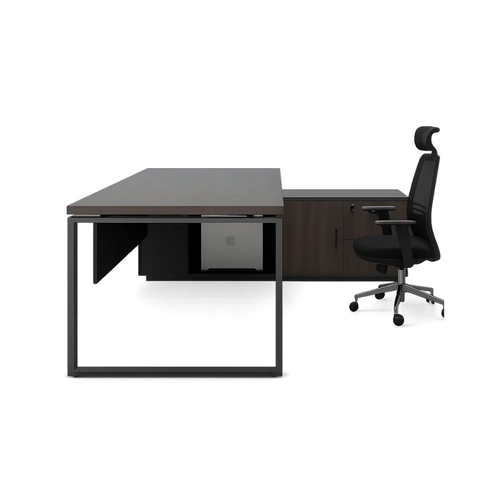 2. Thiết kế bàn giám đốc chân sắt có tủ phụ